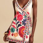 The Ala Boho Mini will turn heads in this vibrant embroidered mini dress, crafted with bold floral patterns and a flattering wrap-style neckline. The sleeveless design and lightweight fabric make it perfect for warm days, while the colorful embroidery adds an artisanal touch that feels both playful and elegant.