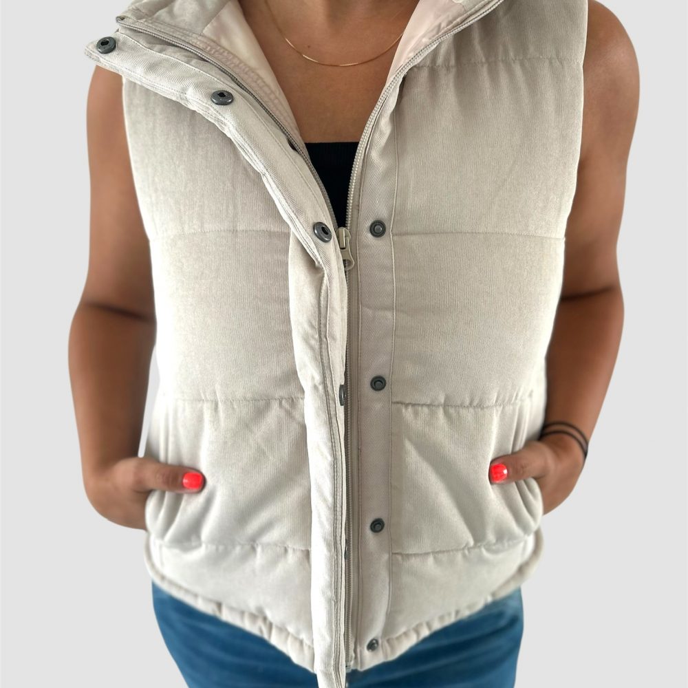 The Dakota puffer vest will keep you warm and cozy on those chilly autumn days without losing a bit of upscale style. The taupe color is perfect to pair with just about any colored top or sweater. The fit is true to size, but with enough space to wear your favorite sweater underneath.