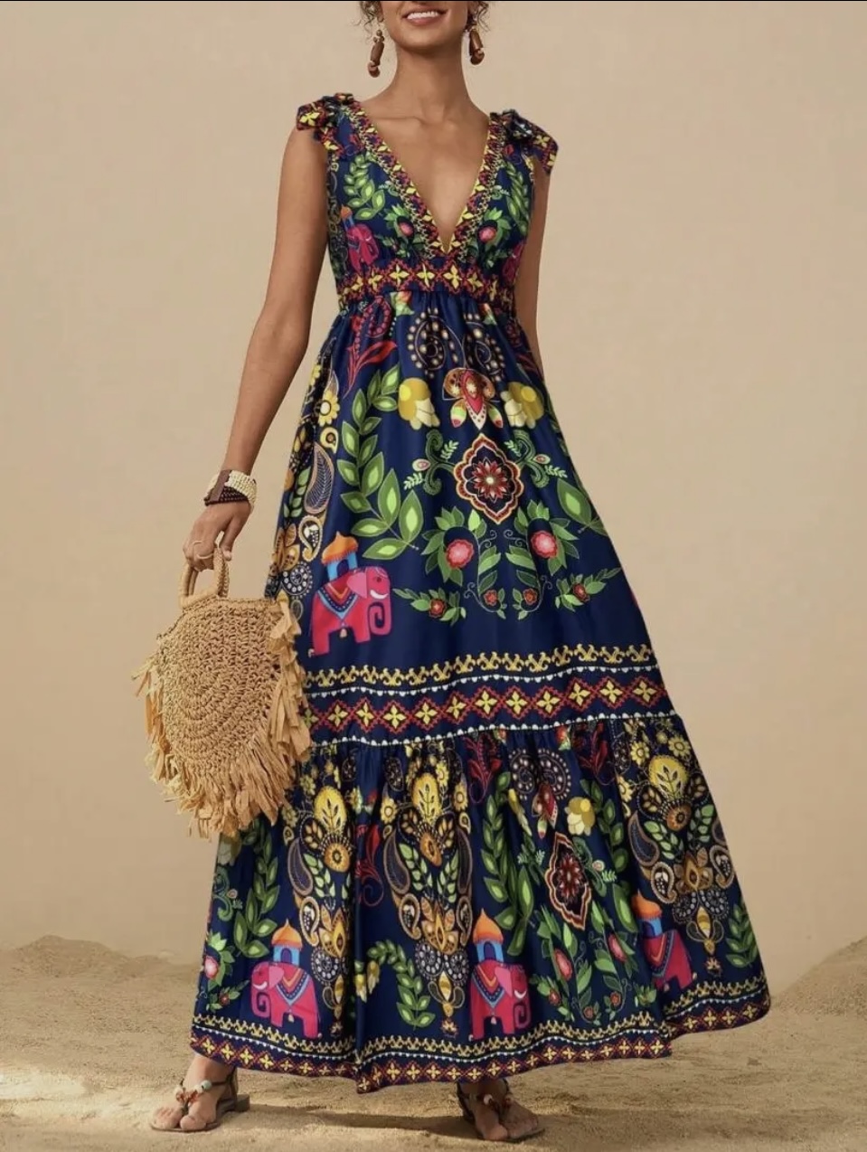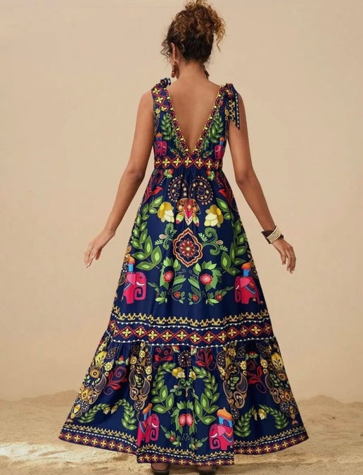 The Ella Maxi in blue combines an elegant design with a comfortable fit, making it a versatile choice for various occasions. Featuring a unique elephant-inspired pattern, this unlined maxi dress ensures a cool and breezy feel for warm days. Its flowing silhouette provides ease of movement while maintaining a stylish appearance. Perfect for casual outings or dressed-up events, the Ella Maxi effortlessly blends comfort and charm.
