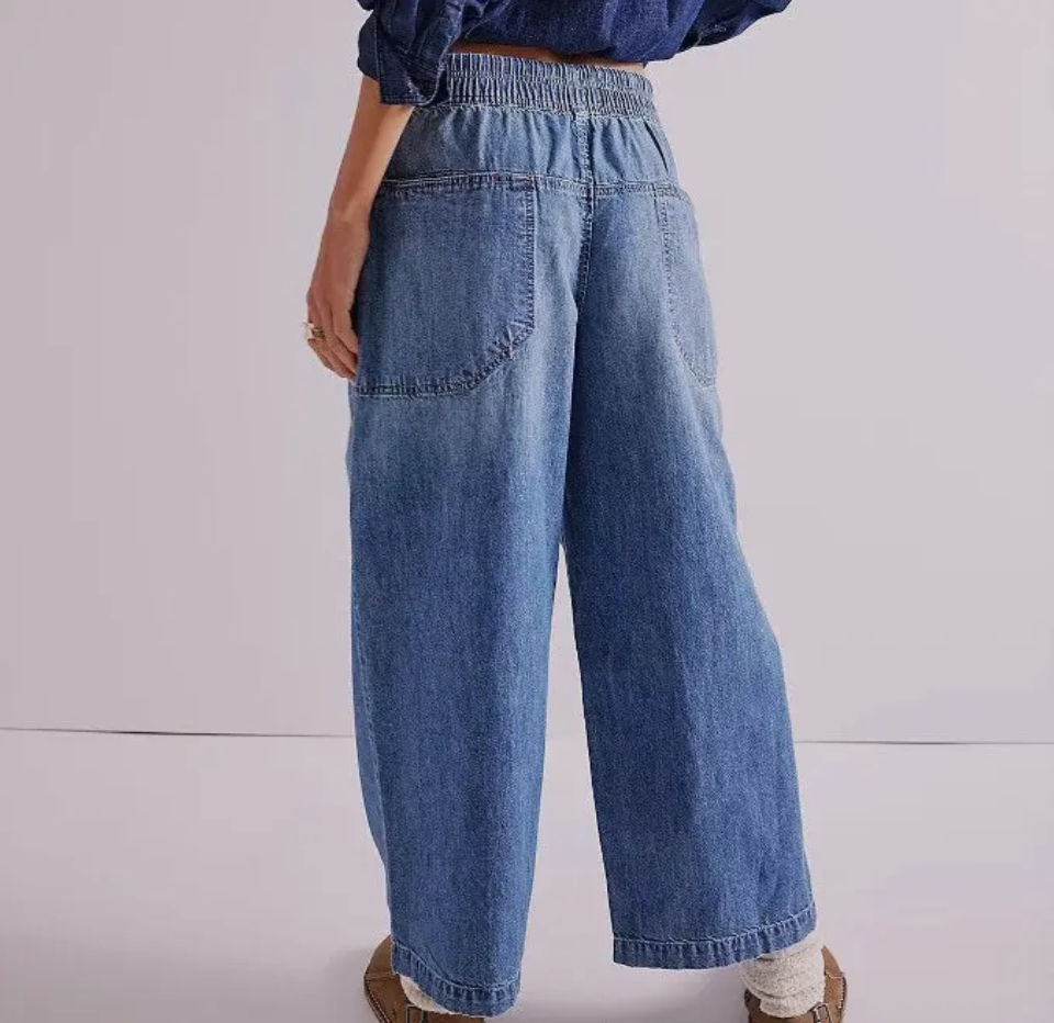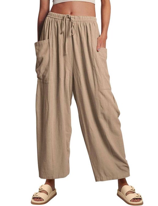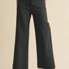 Create an effortlessly laidback look with OUR MONIQUE cropped, wide leg pants! Stretchy and sturdy fabric shapes these ultra cool pants that have a high-waisted fit with a zipper and button closure. The wide legs have front and back patch pockets to add a utility element. Pants end at cropped length. SHE FEATURES belt loops WITH Front and back patch pockets.