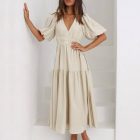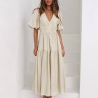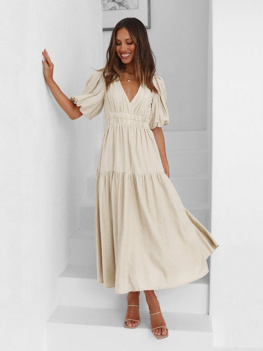 Effortlessly elegant and endlessly versatile, our Maira Bubble Sleeve Midi Dress is your go-to choice for chic comfort. Crafted from a lightweight, breathable fabric, this dress features a flattering deep V-neckline, romantic puff sleeves, and a defined elastic waist that enhances your natural silhouette. The tiered skirt flows gracefully to a maxi length, offering a relaxed yet sophisticated look perfect for warm-weather outings, casual gatherings, or vacation strolls. Pair it with strappy sandals or dress it up with heels and gold accessories for a timeless feminine ensemble.