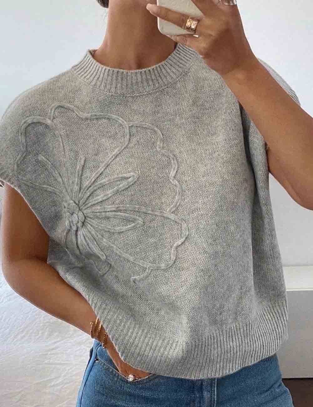 Elevate your everyday style with our Adrianna Floral Jacquard Ribbed Knit Sweater, a chic and cozy essential for the modern wardrobe. Crafted from a soft, breathable knit fabric in a versatile heather grey, this piece features a relaxed silhouette with a ribbed crew neckline and hem for a clean finish. The standout detail? A beautifully textured oversized floral embroidery that adds a touch of artistic charm and feminine flair. Perfect for layering or wearing solo, this top pairs effortlessly with high-rise denim or tailored trousers for a polished, effortless look.