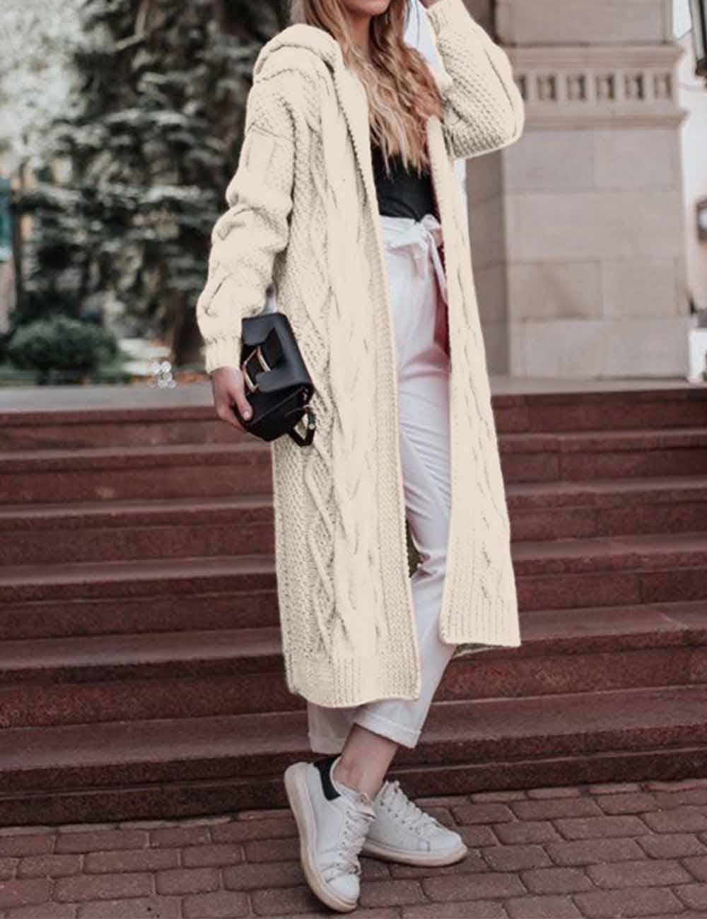 Wrap yourself in warmth and effortless style with our Mallorie Cable Knit Sweater Coat Cardigan. This longline, open-front cardigan is crafted from ultra-soft, heavy knit fabric, making it your ultimate cold-weather essential. Featuring a timeless cable-knit design, cozy hood, and relaxed fit, it adds a layer of texture and comfort to any outfit. Whether you're running errands, lounging at home, or heading out for a casual day, this piece brings both function and fashion.