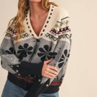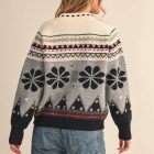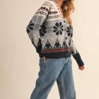 Cozy meets chic in this Nordic Knit Button-Up Cardigan, a statement piece perfect for chilly days and laid-back evenings. Featuring a beautifully detailed fair isle pattern in soft tones of cream, grey, navy, and subtle pops of red and yellow, this cardigan adds warmth and personality to any outfit.