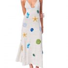 Bring charm to your summer style with this white maxi dress featuring vibrant circular prints in blue, yellow, and green. The sleeveless design with thin straps keeps it breezy, while the flowy silhouette makes it perfect for warm-weather outings, vacations, or beach strolls.