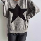 Shine bright in our Sarah Round Neck Star Jacquard Pullover Sweater, the perfect blend of cozy comfort and bold style. Crafted from a soft, breathable knit fabric, this relaxed-fit sweater features a striking oversized black star on the front and a matching smaller star detail on the sleeve. Its neutral grey base makes it an effortless match with jeans, leggings, or faux leather pants for a chic, laid-back look.
