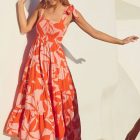 Radiate vacation vibes in our Olivia Sleeveless Tie Shoulder Daily Maxi Dress — a breezy, feel-good favorite made for sun-soaked days and golden hour strolls. Featuring a vibrant coral and blush tropical print, this dress is designed with a smocked bodice for a flattering fit and a tiered skirt that flows with every step.