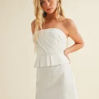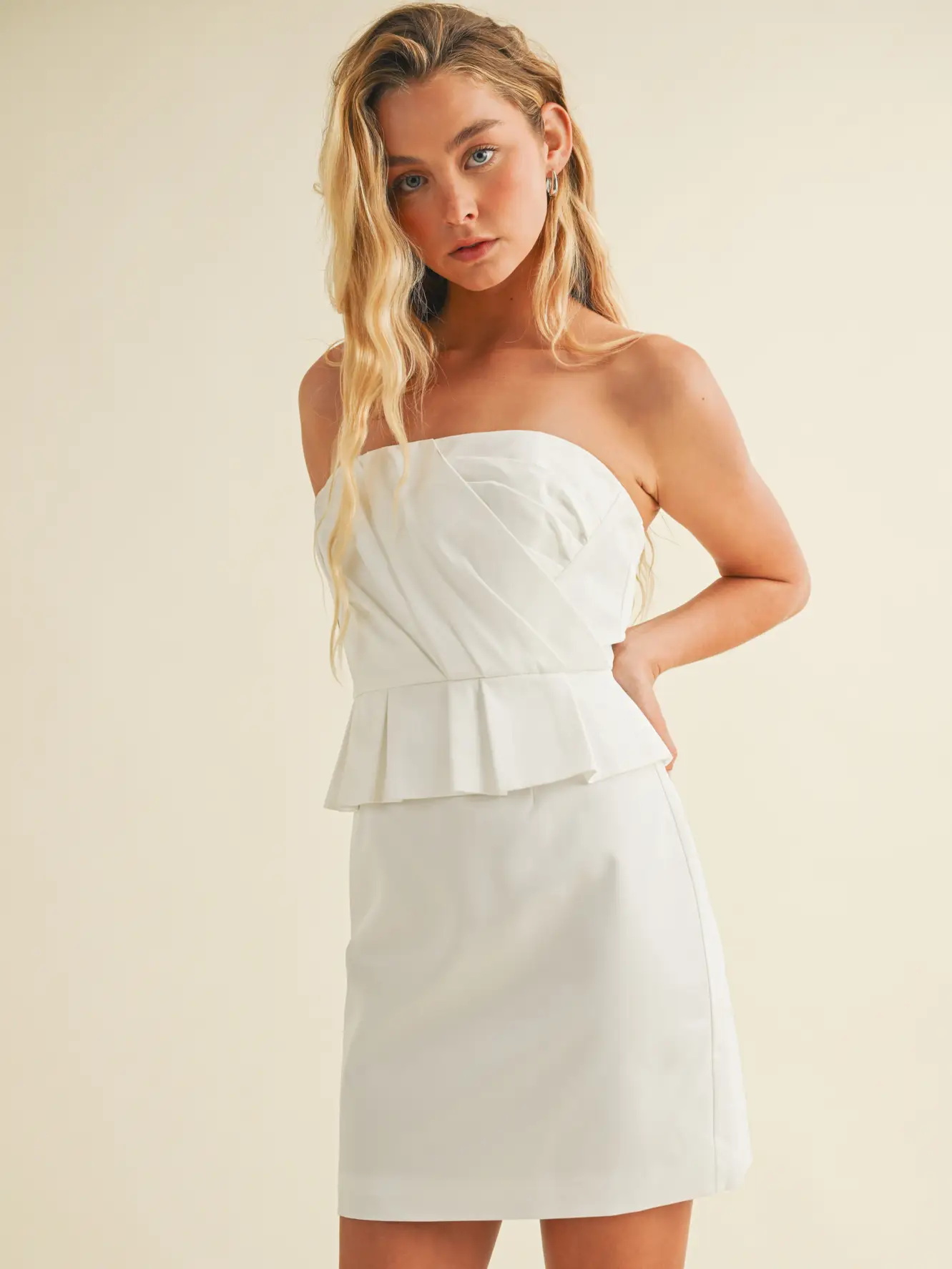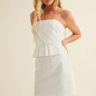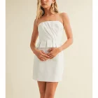 Make a statement in this sleek and modern strapless mini dress, designed for effortless elegance. Featuring a clean, straight neckline and softly gathered bodice, this piece flatters the figure while offering a refined, minimalist aesthetic.